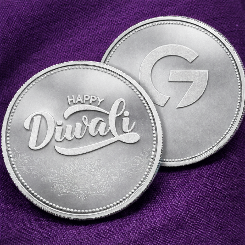 Celebrate the festival of lights with a keepsake that lasts a lifetime. The Happy Diwali Silver Coin from Gold9 Heritage is crafted in .999 fine silver and finished in a premium proof style that combines a soft matte relief with a refined satin background for an elegant, collectible look.